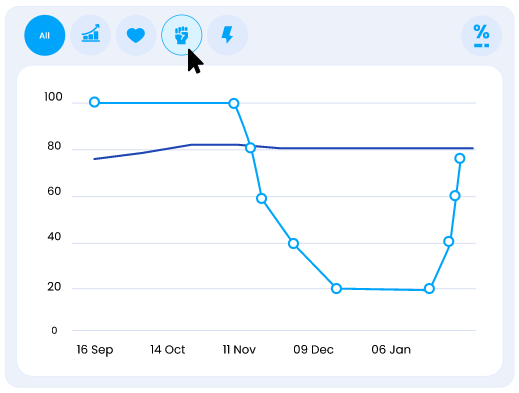 Når man måler teamets trivsel og performance, er kontekst vigtigt. Et bestemt resultat afslører ikke meget, medmindre du ved, om det er en fremskridt eller et fald i forhold til det sidste feedback-loop. Derfor tracker vi udviklingen i vores ESSENTIAL-abonnement.
