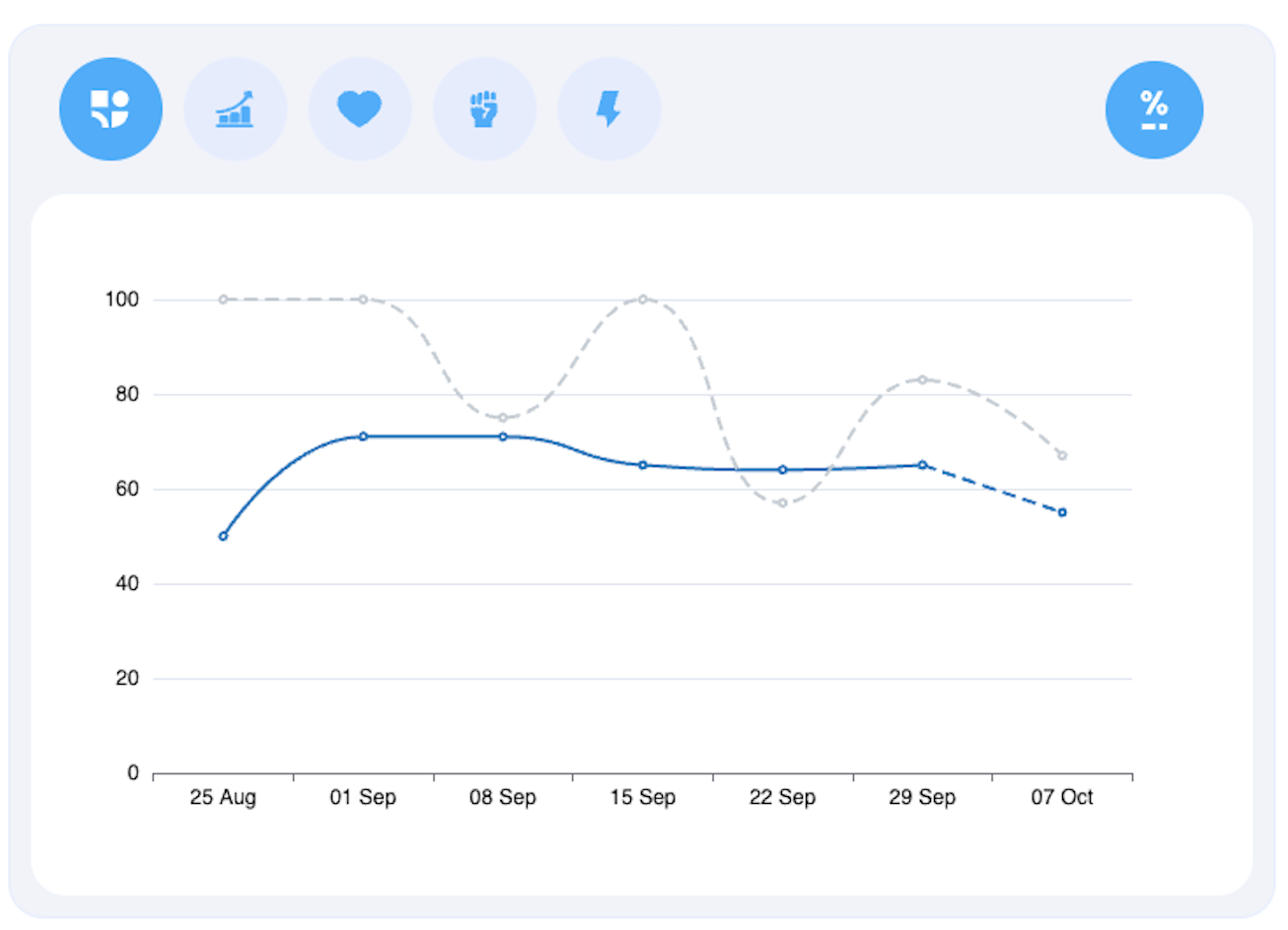 You'll see your Team Progress (*Essential features) on the right side of the dashboard. If you just received your first data, your progress isn't relevant yet. But over time, it'll be essential to have some context when you look at your results. Of course, your result is more valuable when you know if it is higher or lower than the previous feedback loop.