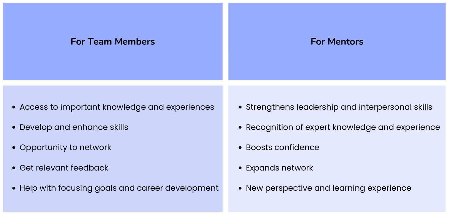 Implementing a mentorship might take some time, but don't be discouraged. Supporting team members, cultivating relationships, and encouraging a sharing culture will always help your team in the long run!
